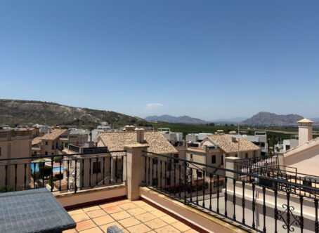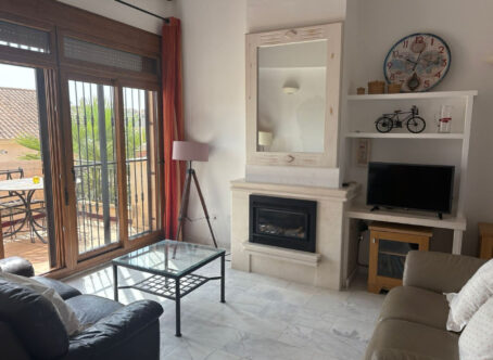 MORE PHOTOS COMING SOON! We are pleased to present this top floor apartment on the La Finca Golf Resort, Algorfa. The property is on the top floor and has an open plan layout with a lounge diner, and American style, fully equipped kitchen. The lounge has a feature fireplace and patio doors that give access to a terrace, perfect for enjoying your morning coffee. Stairs from the terrace lead up to a large private solarium with incredible views of the countryside and mountains. There are two double bedrooms with fitted wardrobes, a family bathroom and en-suite shower room. The apartment is sold fully furnished and ready to move in, making it a ideal full time residence or holiday home that you can enjoy from the day you receive the keys! There are many bars and restaurants, as well as convenience stores, hair dressers, spa hotel and much more. Contact us today to register your interest.
