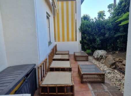 Ground floor apartment in Nueva Atalaya, Estepona, located in a very quiet development with beautiful gardens, two pools, a gym, a meeting room, a library, etc. There is a 24-hour reception with multilingual staff, as well as 24-hour security. The apartment is in good condition but needs renovation to modernize it. It has two bedrooms, two full bathrooms, a fully equipped kitchen, and a living room that opens onto a pleasant terrace with a small, beautiful garden overlooking the community pool. It includes a storage room and a garage space, and there is also outdoor parking available as the area is gated. This is the ideal place to live or rent out due to its tranquility. It is located 10 minutes from Puerto Banús and 5 minutes from San Pedro Alcántara.
