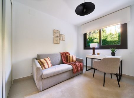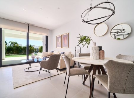 New Development: Prices from 540,000 € to 540,000 €. [Beds: 2 - 2] [Baths: 2 - 2] [Built size: 90.00 m2 - 90.00 m2] Last Unit! Key Ready, fully furnished south facing 2 bedroom ground floor inside a gated community with pools, gardens, jacuzzis and children area. Strategically located in Marbellas´s New Golden Mile, in walking distance to the beach, all amenities, services, and the town of Cancelada, within a 10 minute drive to both Puerto Banús and Estepona. Enjoying a modern design with comfort qualities such as underfloor heating throughout, efficient aerothermy heating, wide terraces and garden, with south orientation, two garage spaces and a storage room.
