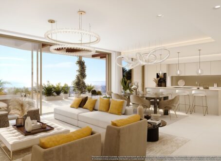 New development with the utmost best views along the coast. If you have ever dreamt of having a good view you must come and see these views. Nothing comparable ! Modern architecture, contemporary finishes, large terraces makes this top development very desirable. Modern 3 bedroom ground floor villa apartment in our new gated resort, the sixth project of our Residential Country Club Resort, enjoys one of the best locations in the entire complex because of the dominant position and its incredible viewa where enjoy the Mediterranean coast, Lake Istán and La Concha mountain at the same time. Situated in the idyllic Benahavis countryside, just behind the beaches of the Costa del Sol. Set amidst lush landscaped gardens, certificate with sustainability urbanization projects BREAAM, promising a serene and exclusive living experience. It offers a bold contemporary design and a captivating organic architectural philosophy in harmony with the environment. In a very exclusive luxurious urbanization with only 15 homes spread over 3 blocks with communal gardens and saline-treated pools , the apartment has the highest material quality respecting a Breeam design that sustainably embraces the beauty of the natural environment. We are launching a new tipe of apartment concept that we call "villa garden apartment" built on two floors with a garden and private pool + shower and its leisure area of 117,78 m2 that allows the use of that space as an office, gym, cinema, games room, sauna or any other use that the owners decide to give it. This splendid ground floor apartment has: large living room with very large window (floor to ceiling), Bulthaup open kitchen fully equipped with Miele appliances, integrated fireplace, separate laundry room, home automation, underfloor heating, 3 bedrooms, 3 bathrooms and guest toilet. 2 parking spaces and 1 storage room are included in the price. Taking advantage of the views and the light, the apartments are designed with large windows and they lead out to very large terraces. The penthouses have private pools on the solarium. The urbanisation is set back in the foothills behind the golf valley of Nueva Andalucia but with easy access to all the amenities in the valley and Puerto Banus. Set in a natural environment you will be able to enjoy walks through the neighbouring countryside and live surrounded by peace and tranquility. The estate has 24 hour security, a six hole executive golf course, a clubhouse with gym and wellness center, an artificial lake with an artificial beach, tennis and paddle tennis courts, restaurant at the clubhouse and an equestrian center. There will be several play areas for children and the lake shall have canoes and kayaks. The materials used in the finish of the apartments are top quality and amongst the best you will find in the area.