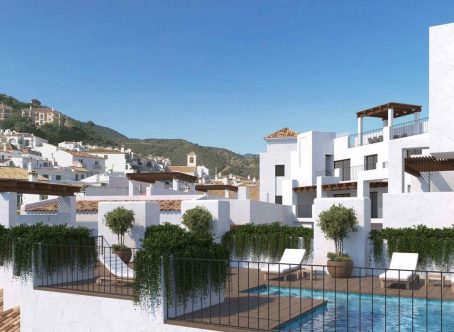 New Development: Prices from 400,000 € to 890,000 €. [Beds: 2 - 3] [Baths: 2 - 2] [Built size: 78.00 m2 - 128.00 m2] Located in the heart of Benahavís, a new residential development is being launched featuring 28 Mediterranean-style apartments with 1, 2, or 3 bedrooms. Each home includes a private underground parking space and access to a communal rooftop pool. This development offers a unique opportunity to enjoy an authentic Andalusian lifestyle, surrounded by natural beauty near the Serranía de Ronda mountains and the Guadalmina River. Just a 5-minute drive away are some of the region's top golf courses, and the popular destinations of San Pedro de Alcántara and Puerto Banús are only 15 minutes away. The apartments will be delivered fully equipped with high-quality materials, premium finishes, and a distinctive, contemporary interior design. The project has already received its construction license, with building set to begin in May 2025 and completion scheduled for April 2027. Each unit also comes with pre-installation for an electric vehicle charging point.