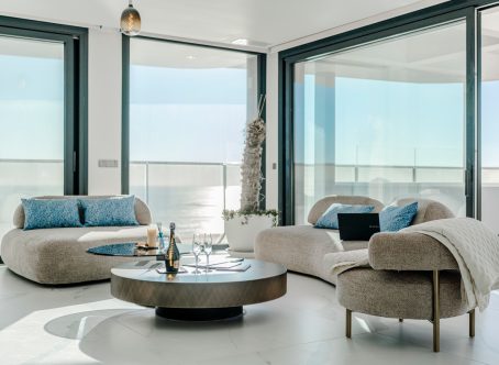Situated in the prestigious Residential Sunset Cliffs, this stunning 29th-floor apartment offers an unparalleled coastal lifestyle with frontal sea views of the Mediterranean and Poniente Beach. Designed for both comfort and sophistication, this home seamlessly blends modern elegance with breathtaking surroundings. The spacious living area is bathed in natural light, featuring an open-concept kitchen equipped with high-end Samsung smart appliances and exclusive Porcelanosa finishes. With its seamless design and premium materials, this space is perfect for both everyday living and entertaining. The primary suite is a private retreat, boasting a walk-in closet, an en-suite spa-style bathroom, and a tranquil ambiance. A second bedroom provides versatility and can easily be converted into a third bedroom if desired. Automated climate control and luxurious finishes throughout the home ensure an exceptional level of comfort. A standout feature of this residence is the expansive private terrace, where a private jacuzzi invites you to unwind while taking in the uninterrupted frontal views of the sea. This outdoor space offers the perfect setting to relax and enjoy the stunning coastal scenery. As part of the exclusive Sunset Cliffs residential complex, residents enjoy access to heated pools, a panoramic fitness center, sports courts, a cinema, and children’s facilities, providing a resort-style experience. The development also offers direct beach access and is just minutes from Benidorm’s historic center, combining luxury with convenience. The property includes two storage units and underground parking, adding practicality to its many premium features. A rare opportunity to experience luxury, comfort, and spectacular sea views in one of Benidorm’s most sought-after locations.