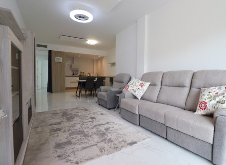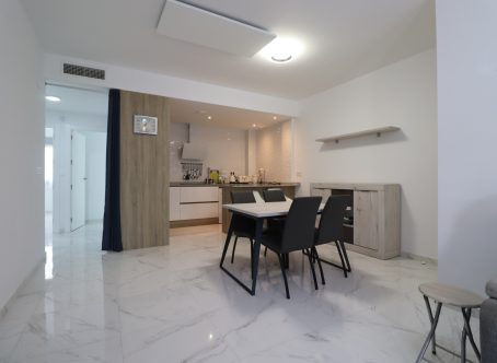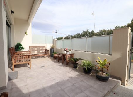 This East-facing 3-bedroom, ground-floor apartment in Benijófar offers a superb location just a 5-minute walk to local shops, bars, restaurants, and a bakery, with a main brand supermarket only 2 minutes by car. The beautiful beaches of the Costa Blanca South are approximately 15 minutes away, making it an ideal choice for both holiday and permanent living. The property features a spacious 100m² build set on a 112m² plot. The open-plan kitchen flows seamlessly into the lounge, which is fitted with ducted air conditioning for year-round comfort. Sliding doors from the lounge open onto a private front terrace, perfect for outdoor dining or relaxing in the sun. There are three double bedrooms with fitted wardrobes, including a master bedroom with its own terrace and en-suite bathroom. Ducted air conditioning is installed throughout the bedrooms. A family bathroom serves the remaining bedrooms. Additional features include basement parking, a private storage room, and access to a communal swimming pool within the well-maintained complex. This apartment presents a fantastic opportunity to enjoy a modern, convenient lifestyle in the heart of Costa Blanca South.