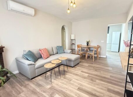 A fully renovated 2 bed 1 bath ground floor apartment located in La Regia, Cabo Roig, Costa Blanca South. This property is offered for sale in very good condition as it has been fully renovated & very briefly consists of the following :- Lounge/diner with hot and cold A/C, separate newly fitted kitchen, 2 x double bedrooms both with fitted wardrobes, 1 x newly fitted shower room, covered front terrace, front garden & much more. There is no communal swimming pool. This property is in a very good location being around 15-20 minutes walk to the very large Zenia Boulevard shopping mall & around 10 minutes walk from the Cabo Roig strip where you will find numerous bars, shops & restaurant & around 20 minutes walk to the beach & Alicante airport is 50 minutes drive.