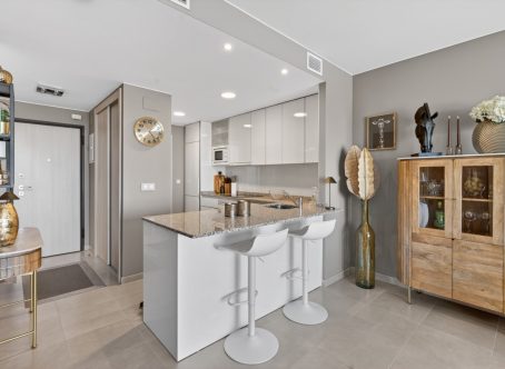Bright Designer Penthouse Apartment in Lomas de Cabo Roig with Panoramic Views Welcome to this exceptional penthouse-style apartment in the heart of Lomas de Cabo Roig, one of the most sought-after residential areas on the southern Costa Blanca. Stylish, modern, and filled with natural light, this designer home offers a perfect blend of comfort, elegance, and Mediterranean living. Contemporary Interior The apartment features two bright bedrooms and two sleek modern bathrooms, both equipped with luxurious underfloor heating. A minimalist open-plan kitchen flows seamlessly into a spacious living area, creating a sophisticated yet welcoming environment. From here, step out onto your private terrace - ideal for morning coffee or evening relaxation. Spectacular Outdoor Living A standout feature is the private roof terrace, offering panoramic views towards the Mediterranean Sea. This generous space is perfect for sunbathing, entertaining guests, or simply enjoying the year-round sunshine and coastal breeze. Resort-Style Communal Areas Residents enjoy access to outstanding shared facilities, including: Two beautiful swimming pools Landscaped gardens Children’s play park Fully equipped outdoor fitness area Nearby restaurants, cafés, and everyday amenities are all within easy walking distance, providing a convenient and luxurious lifestyle. Unbeatable Location The property is ideally situated just a short drive from some of the area’s most popular attractions: Only 10 minutes to the sandy shores of Playa de Glea Close to the renowned La Zenia Boulevard shopping centre Surrounded by top golf courses including Villamartín Golf, Real Club de Golf Campoamor, Las Ramblas Golf, and the award-winning Las Colinas Golf & Country Club Your Costa Blanca Lifestyle Awaits Whether you are searching for a permanent home, stylish holiday retreat, or smart investment, this unique penthouse apartment offers location, quality, and lifestyle in equal measure. Contact us today to arrange your private viewing.