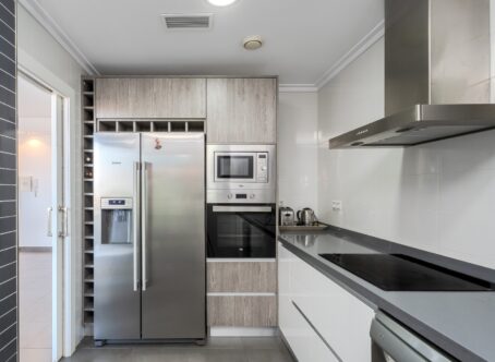 Penthouse in Royal Park Green Spa – Lomas de Cabo Roig Discover this exceptional penthouse in the prestigious Royal Park Green Spa, a beautifully maintained residential complex known for its lush gardens, high-end spa facilities, and serene atmosphere. The property also includes an underground parking space with a private storage room for added convenience. Step inside to a spacious and contemporary home featuring three bedrooms and two bathrooms. The master bedroom benefits from an en-suite bathroom and direct access to its own private balcony. The two additional bedrooms share an exclusive side balcony-an extremely rare feature within the community-allowing you to enjoy either the warm afternoon sun or cooler shade throughout the day. The bright and airy living and dining area is surrounded by large windows that fill the space with natural light. The custom-designed kitchen offers high-quality appliances, including a fridge with ice maker and a dedicated filtered water system, along with carefully planned storage solutions. A separate laundry room enhances practicality. The crown jewel of this penthouse is the private rooftop terrace, boasting spectacular panoramic sea views stretching all the way to La Manga. Designed for relaxation and entertaining, it features an elevated platform for enhanced views, built-in storage, and an outdoor fridge. There is also ample space to install a jacuzzi, making this the ultimate spot to enjoy long sunny afternoons or memorable evenings under the stars. Comfort is assured year-round with a brand-new Mitsubishi central A/C system and underfloor heating in both bathrooms. The property is sold fully furnished (excluding personal items) and is move-in ready. Royal Park Green Spa – Facilities & Lifestyle Residents of Royal Park Green Spa enjoy access to an impressive range of wellness and leisure amenities, including: • Outdoor swimming pool • Outdoor jacuzzi • Heated indoor pool • Finnish sauna and Turkish bath • Fully equipped gym and spa area • Beautiful landscaped gardens and peaceful green areas The shared rooftop terrace is rarely used, as this penthouse has its own private solarium. The community is friendly, quiet and international, with several Norwegian residents contributing to a warm and welcoming atmosphere. About the Area – Lomas de Cabo Roig Lomas de Cabo Roig is one of Orihuela Costa’s most desirable residential locations, offering an ideal balance of tranquility and convenience. Within minutes, you can reach some of the finest beaches on the Costa Blanca, including Cabo Roig, La Zenia and Campoamor. Golf enthusiasts will appreciate the proximity to renowned courses such as Las Ramblas, Villamartín and Campoamor Golf-all within a 10-minute drive. The famous Zenia Boulevard, with more than 150 shops, international dining options and entertainment, is also just a short drive away. Supermarkets, local markets and restaurants are within easy walking distance. With excellent road connections via the AP-7 motorway, both Alicante Airport and Murcia International Airport are under an hour away, making this penthouse an outstanding choice for permanent living, holidays, or investment.