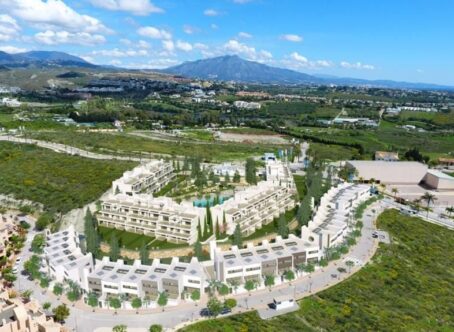 New complex apartments, with contemporary design, convenience and quality, it’s all about living the Spanish dream. Very large windows invite natural light to flood into the open plan living room and kitchen. Patio doors provide access to a fabulous terrace featuring contemporary glass balustrades. Ground floor apartments benefit from very spacious private gardens and the penthouses have attractive space saving spiral staircases leading to a superb private solarium, ideal for soaking up the views. The exact configuration will depend upon the type and number of bedrooms: The 3 bedroom duplex apartments boast a stunning additional terrace and all the master bedrooms have a beautifully appointed en-suite bathroom with the guest bedrooms being served by one or two full family bathrooms. Each apartment will be delivered with a fully fitted kitchen with white high gloss cabinets. The apartments face southwest and come with a garage space and a store room. The properties will have a right to access the private social club which has a cafeteria, gymnasium, indoor heated pool, and sauna.