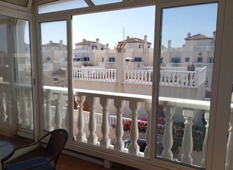 Spacious Top Floor Corner Apartment Next to Pool in Charming Daya Vieja This larger-than-average Top floor corner apartment enjoys a unique location right next to the communal pool. The property features 2 double bedrooms, a very spacious lounge/dining area, an open-plan kitchen, and a full bathroom. Patio doors open onto a large terrace, with external stairs leading up to a huge solarium complete with a built-in BBQ and lovely views of the surrounding area-perfect for sunbathing all day long. Ideal as a holiday home, this apartment is perfectly positioned within easy reach of local amenities. Daya Vieja is a traditional Spanish village full of charm, offering bars, restaurants, communal spaces, and a municipal swimming pool all within walking distance. Just 10 minutes by car from the Blue Flag beaches of Guardamar del Segura and 30 minutes from Alicante airport, it also benefits from proximity to excellent golf courses at Ciudad Quesada, La Marquesa, and La Finca, all within 10-15 minutes’ drive.