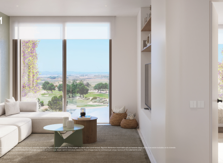 A fabulous opportunity to buy a brand new apartment set within a gated and established golf resort with 24 hour security. The resort boasts a desert style 18 hole golf course by Nicklaus Design, practise facilities, a supermarket, a stunning clubhouse, tennis courts and other sports facilities. Located 10-15 minutes drive from Murcia City, 10 minutes from Murcia International airport and 1 hour from Alicante airport. The beach is a 15 minute drive away. These apartments are finished to the highest standards, being constructed by a well established developer with a history of building excellent quality developments. This spacious apartment is located on the ground floor and comes with a 33m sunny terrace facing South-West. There is a 34m living room with open plan kitchen (appliances included), master bedroom with en suite shower room, second double bedrooms and family bathroom. The apartment comes with a parking space in the secure underground garage and a storeroom. Vented air conditioning is included with an option to upgrade to an Airzone climate control system. These apartments also have video-phone entry systems. Outside there are landscaped gardens and a communal swimming pool. Contact us to arrange a tour of this brand new development.