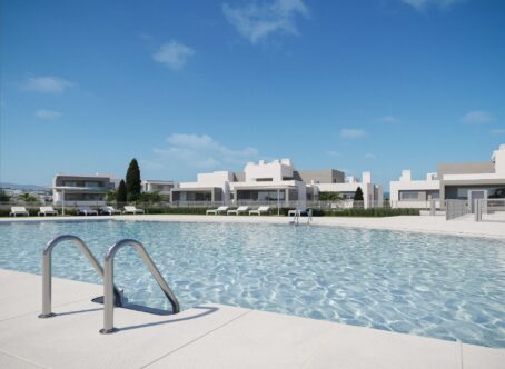 New Apartment in a central location within easy reach of the beach and other amenities such as an international school. This apartment includes 1 garage space and 1 store room. The development has three swimming pools for adults and three separate children’s paddling pools, gardens and greenzones. Furthermore, it will also have a fully equipped gym, co-working area, spa, cinema, youth club and accesibility ramps. The specifications include fully equipped kitchens, bathrooms with thermostatic tapware, resin shower trays, fitted wardrobes, and walls with noise insulation. The windows have aluminium profile carpentry with thermal bridge break, double-glazing with air chamber and motorised aluminium blinds in bedrooms. The apartment is equipped with a high energy efficiency aerothermal system, air-conditioning for heating and cooling, and drains with sound-buffering PVC downpipes.