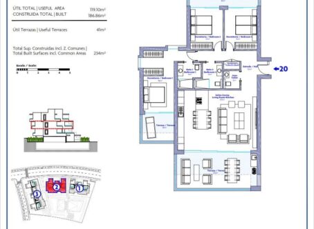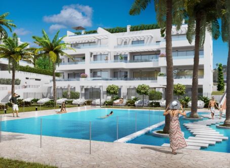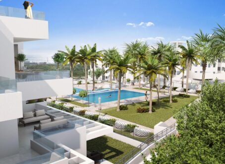 Beautiful modern apartment with 3 bedrooms and 2 bathrooms and terraces of 41m2. The apartment is exceptionally well located in terms of infrastructure and has a direct connection to both the highway and the toll road. In addition, the recently built Estepona hospital has ensured that the public areas and streets are modern and complete with parks and green spaces. The convenient access by car takes you in 4 minutes to the historic centre of Estepona, in 15 minutes to vibrant Puerto Banús, in 20 minutes to the centre of Marbella and within 50 minutes by toll road to Malaga airport. Within walking distance there are several shops, restaurants, a supermarket and a petrol station. Estepona has a full range of shops, sports facilities, good restaurants and other amenities. Estepona also has a wide variety of beautiful beaches and the nearest beach is within walking distance of less than 500 metres. Included in the price 2 parking spaces and a storage of 8m2