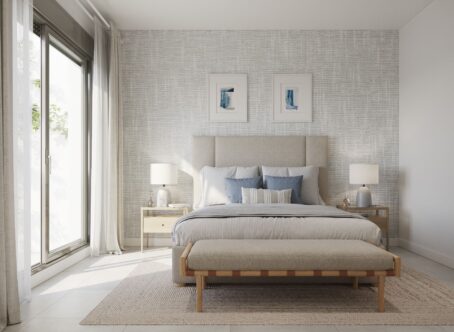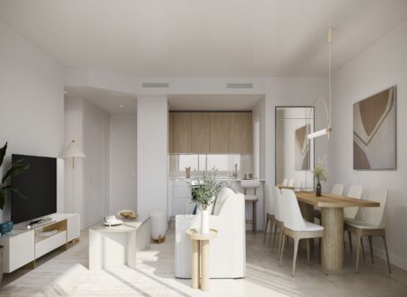 New Apartment in a central location within easy reach of the beach and other amenities such as an international school. This apartment includes 2 garage spaces and 1 store room. The development has three swimming pools for adults and three separate children’s paddling pools, gardens and greenzones. Furthermore, it will also have a fully equipped gym, co-working area, spa, cinema, youth club and accesibility ramps. The specifications include fully equipped kitchens, bathrooms with thermostatic tapware, resin shower trays, fitted wardrobes, and walls with noise insulation. The windows have aluminium profile carpentry with thermal bridge break, double-glazing with air chamber and motorised aluminium blinds in bedrooms. The apartment is equipped with a high energy efficiency aerothermal system, air-conditioning for heating and cooling, and drains with sound-buffering PVC downpipes.