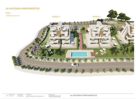 <strong>SPECIAL OFFERS APPLY - contact us for more information. </strong> Amazing opportunity to purchase a two bedroom two bathroom new build apartment for this price. Located on Hacienda del Alamo Golf Resort these apartments boast great views over the mountains and the golf and are conveniently located close to the facilities. They are building 5 phases and in each phase will be two blocks of apartments and a communal pool and garden area, there are ground, first and penthouse options and all come with underground parking, useful storeroom and elevator access to all floors. On entering the property you will find the open plan kitchen dining living room with large patio doors that lead onto the south westerly terrace. and 200m2 wrap around garden. There are two double bedrooms with fitted wardrobes, a family bathroom and the master bedroom has an ensuite bathroom. Both bedrooms have patio doors too that lead onto the garden. Contact us to arrange  to visit these and others that suit your requisites.