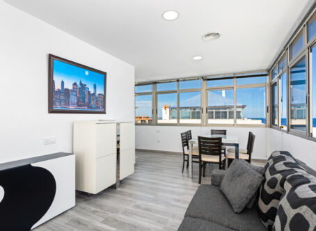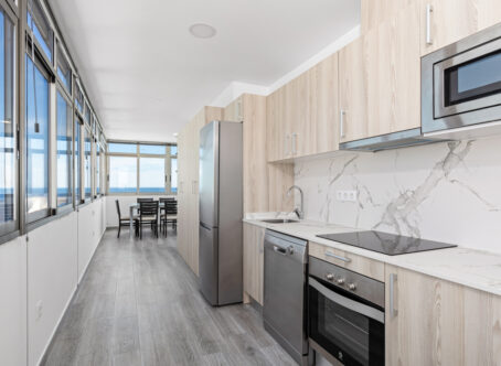 Magnificent penthouse on the first line of the Mediterranean Sea Part of Euromarina Towers, a project built in 2007 and located at km. 16.5 from La Manga del Mar Menor, on the first line of the Mediterranean Sea and the second line of the Mar Menor. Its incredible location allows you to enjoy the beaches of both seas. It has two community pools facing the Mediterranean, as well as direct access to the beach. The penthouse has a bedroom, two bathrooms, a kitchen and a space with large windows overlooking the sea that acts as a dining room and living room. The apartment has air conditioning. The price includes a parking space in the building. The area has a wide variety of restaurants, supermarkets, pharmacy, cafeterias, not being necessary to resort to the car on a daily basis.