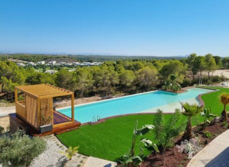 Immediately ready to move in and fully furnished Luxury apartment with panoramic views over the coastline located in one of the most prestigious resorts of the Costa Blanca; Las Colinas Golf Resort. This apartment is immediately available and comes: Fully furnished. The very latest home automation. Siemens kitchen appliances. Induction Air conditioning both heat and cooling throughout the house. Underfloor heating in the bathrooms. LED and mood lighting. Electric shutters. Underground private parking space. Beautiful communal garden with swimming pool.