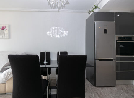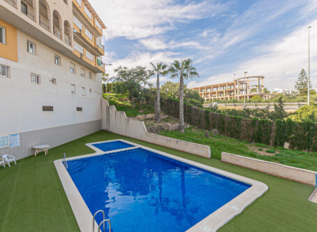 Bright 2-Bedroom Apartment Near La Zenia Beach We are pleased to present this sunny 2-bedroom, 1-bathroom apartment in La Zenia, just 700 metres from the golden sands of La Zenia Beach, one of Orihuela Costa’s most popular beaches. The southeast-facing property enjoys year-round sunshine and side sea views from the terrace, perfect for enjoying the Mediterranean lifestyle. Inside, the apartment offers a living-dining area with access to the terrace, a fully equipped open-plan kitchen, two spacious bedrooms with fitted wardrobes, and a modern bathroom with shower (washing machine included). Additional features include ceiling fans in the bedrooms and air conditioning in the living room. The property is sold fully furnished and ready to move in. Residents benefit from a communal swimming pool, sunbathing areas, and a private underground parking space. Located close to restaurants, cafés, supermarkets, pharmacies, and Zenia Boulevard, this apartment is ideal for year-round living, holiday stays, or rental investment.