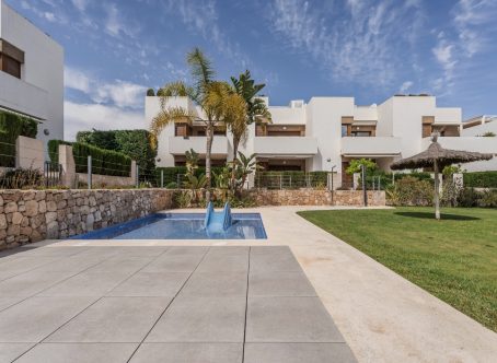 Costa Blanca Eiendom presents this attractive ground floor apartment, located in the prestigious residential complex Secreto de la Zenia in Orihuela Costa. This property offers the perfect combination of comfort, contemporary design, and location. The apartment features a bright and spacious living room, decorated in a modern style and equipped with air conditioning to ensure maximum comfort throughout the year. The property includes two bedrooms: the master with a double bed and en-suite bathroom, and a second bedroom with two single beds. Both bedrooms come with built-in wardrobes. In addition, there is a second fully equipped bathroom. The open-plan kitchen is fully equipped with high-end appliances: dishwasher, oven, ceramic hob, extractor hood, and refrigerator, all in excellent condition. The space is complemented by modern and functional furniture that adds practicality and style. One of the main highlights of this apartment is its private garden of 71 m² – the perfect space to enjoy the sun, host barbecues, or simply relax outdoors. The complex offers outstanding communal areas, including a swimming pool for adults (12x8 m), two heated jacuzzis, sauna, gym with biomechanical equipment, children's pool, play area with water slide, and bicycle parking. There is also a community parking area with controlled access, ensuring security and peace of mind. Just a few minutes' walk away are all necessary services: supermarkets, restaurants, and the renowned shopping center "La Zenia Boulevard," one of the largest in Alicante province, with over 150 stores and an extensive range of dining and leisure options. Located south of Torrevieja on the southern Costa Blanca, this area is one of the most sought-after in Orihuela Costa. With its fine sandy beaches and welcoming atmosphere, it is the ideal destination for holidays or permanent residence. Its wide variety of bars, restaurants, and services make it a perfect choice for those seeking quality of life close to the sea. Contact us for more information or join one of our no-obligation tours to visit this magnificent property.