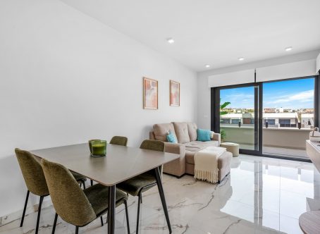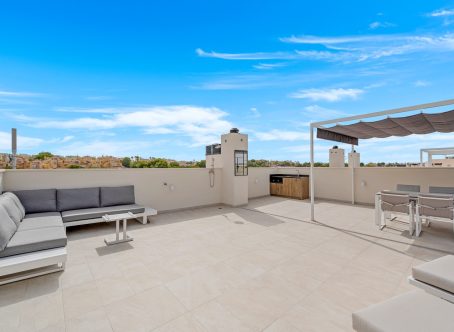 In the highly sought-after area of Los Altos, this stylish and fully furnished 2-bedroom, 2-bathroom penthouse is located in the brand-new Amanecer X residence. With a private roof terrace and sunny balcony, it’s the perfect spot to enjoy the Mediterranean lifestyle. Property Features: Approximately 71 m² of well-designed living space Bright open-plan living area connecting to a 21 m² balcony Large 80 m² solarium with two pergolas and side panels, ideal for sunbathing, entertaining, or relaxing in privacy Fully furnished with tasteful furniture and practical extras for a move-in-ready home Please note: outdoor kitchen and terrace furniture shown are not included but can be purchased separately Community Facilities: Swimming pool Gym Sauna Location Highlights: Prime location close to beaches, shops, and restaurants Combines convenience, comfort, and modern lifestyle on the Costa Blanca This penthouse is ideal for anyone seeking a modern, turnkey home in a desirable area with excellent amenities and outdoor space.