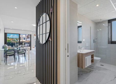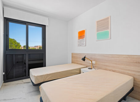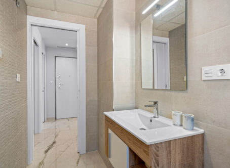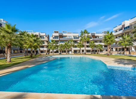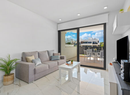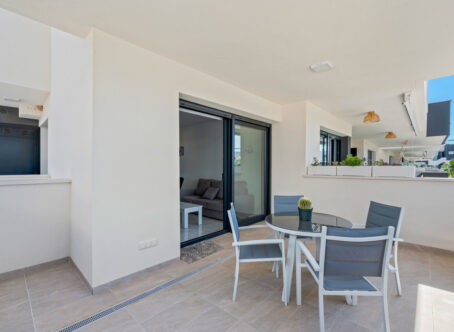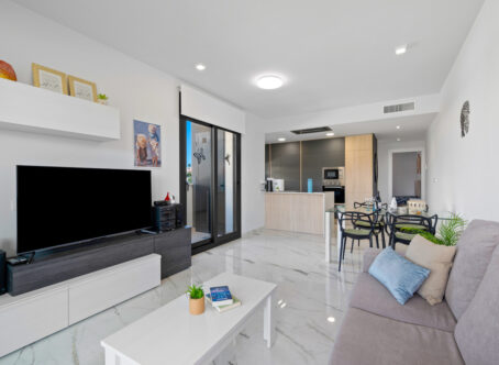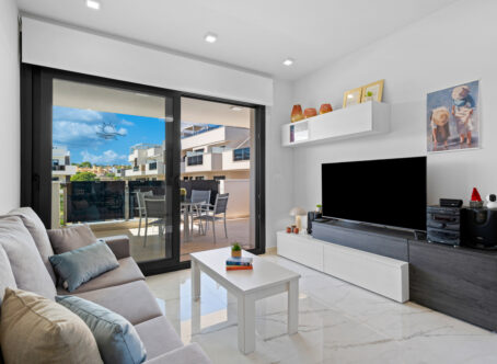 Modern 2-Bedroom Luxury Apartment with Private Terrace in Villamartin This stylish second-floor corner apartment offers two bedrooms, two bathrooms, and a large private terrace in the highly sought-after area of Villamartin, Alicante (Orihuela Costa). The property is sold fully furnished and features a spacious lounge/dining area, a modern open-plan fully equipped kitchen, and two bedrooms with fitted wardrobes, including a master en-suite. Patio doors from the lounge open onto the sunny private terrace. Included in the price are a parking space and storage room in the underground garage. Residents also benefit from an indoor gym, Spa & Wellness area, landscaped communal gardens with swimming pool and jacuzzi, and a children’s playground. Set in a prime location, the apartment is just a few minutes’ walk from Villamartin Plaza, offering a variety of restaurants, bars, and shops. The sandy beaches of La Zenia are only a 10-minute drive away.