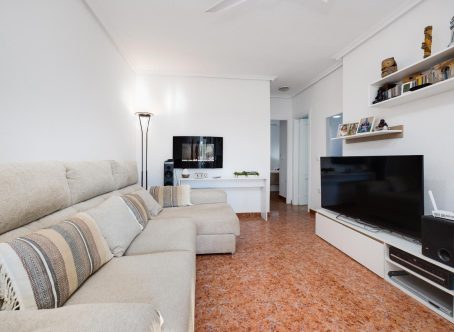 Modern 2-Bedroom Luxury Apartment with Private Terrace in Villamartin This stylish second-floor corner apartment offers two bedrooms, two bathrooms, and a large private terrace in the highly sought-after area of Villamartin, Alicante (Orihuela Costa). The property is sold fully furnished and features a spacious lounge/dining area, a modern open-plan fully equipped kitchen, and two bedrooms with fitted wardrobes, including a master en-suite. Patio doors from the lounge open onto the sunny private terrace. Included in the price are a parking space and storage room in the underground garage. Residents also benefit from an indoor gym, Spa & Wellness area, landscaped communal gardens with swimming pool and jacuzzi, and a children’s playground. Set in a prime location, the apartment is just a few minutes’ walk from Villamartin Plaza, offering a variety of restaurants, bars, and shops. The sandy beaches of La Zenia are only a 10-minute drive away.