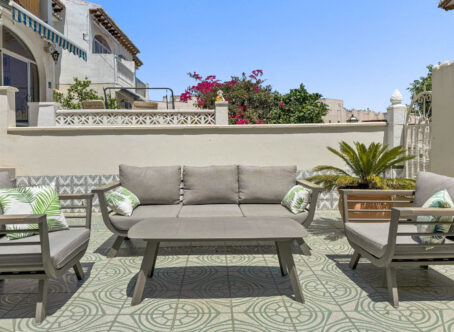 Charming 2-Bedroom Apartment with Private Garden in Lago Jardin II, Torrevieja This delightful apartment in the popular Lago Jardin II area of Torrevieja offers a compact yet practical home designed for comfortable living. Located within a well-maintained community with excellent communal facilities, it combines convenience with a peaceful environment. The property features two bedrooms, a bathroom, a functional kitchen, and a cozy living room with access to a glazed terrace. The terrace leads to a private, fenced garden, perfect for outdoor relaxation. Air conditioning ensures comfort throughout the year. Residents can enjoy the community’s beautiful pool area, surrounded by lush green spaces ideal for sunbathing and leisure. Lago Jardin II benefits from a prime location with restaurants and cafés just 100 meters away, Mercadona supermarket within 750 meters, and green areas including the nearby pink salt lake for outdoor activities. The beach is approximately 3.5 km away, and central Torrevieja is just 6 km from the property.
