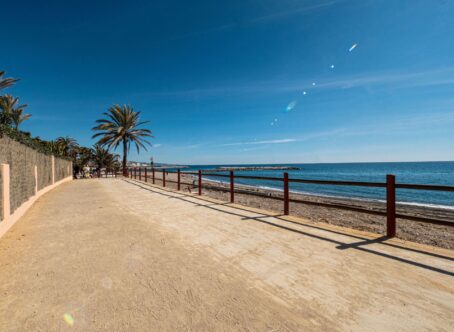 Front line beach apartment in La Herradura. Second floor, facing south to east. Direct views to the beach and sea, walking distance to Puerto Banus. Living and dining area, fitted kitchen, spacious master bedroom en suite, plus one guest bedroom and bathroom. Direct access to the covered terrace with glass curtains. Garage space and storage/bedroom with bathroom and daylight. Community pool and gardens, direct access to the beach.