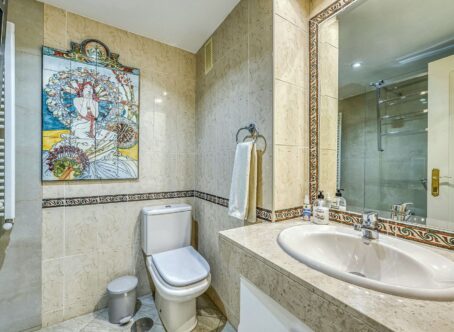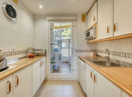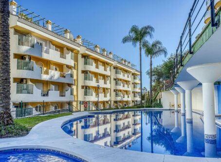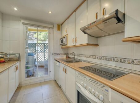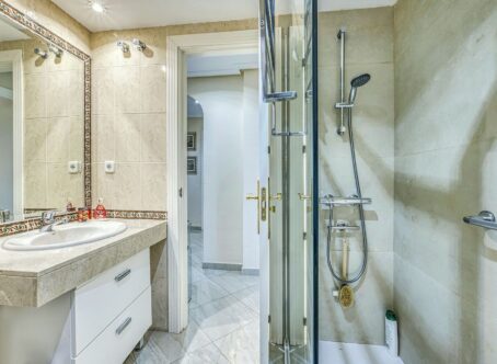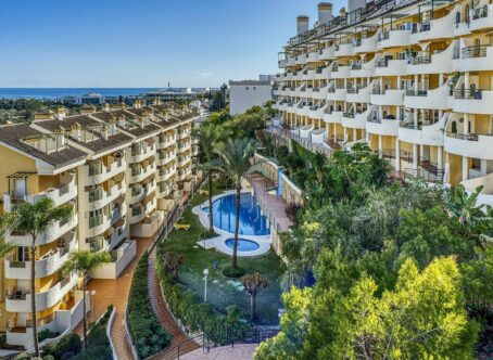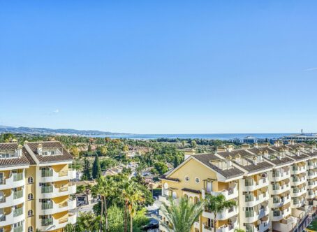 Apartment situated in a very central location within Nueva Andalucia and within walking distance of restaurants, shops, bus stop, Puerto Banus and the beach. Golf courses, tennis clubs and gymnasiums are also within easy reach. The apartment is in a gated community and is in a high location within the complex giving fantastic views of the sea, the valley and "La Concha" mountain. The distribution is easy and practical with the kitchen on the right as one enters, and the living-dining room and terrace on the left. The terrace has 31 m2 so there is space for seating and dining while enjoyng the magnificent views during the day and the night. The bedrooms are alongside with one bathroom with access from the passageway so it may be used by guests and the other bathroom is ensuite in the master bedroom. The floor has been changed by a new floor and a heating system by gas ahs been installed. Also new showers have been made in the bathrooms. The apartment is sold furnished and includes an underground garage space plus a store room of approximately 8 m2. In the community are two pools and paddle tennis courts also. This is a great opportunity as apartments in this block rarely come on the market.