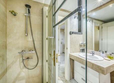 Apartment situated in a very central location within Nueva Andalucia and within walking distance of restaurants, shops, bus stop, Puerto Banus and the beach. Golf courses, tennis clubs and gymnasiums are also within easy reach. The apartment is in a gated community and is in a high location within the complex giving fantastic views of the sea, the valley and "La Concha" mountain. The distribution is easy and practical with the kitchen on the right as one enters, and the living-dining room and terrace on the left. The terrace has 31 m2 so there is space for seating and dining while enjoyng the magnificent views during the day and the night. The bedrooms are alongside with one bathroom with access from the passageway so it may be used by guests and the other bathroom is ensuite in the master bedroom. The floor has been changed by a new floor and a heating system by gas ahs been installed. Also new showers have been made in the bathrooms. The apartment is sold furnished and includes an underground garage space plus a store room of approximately 8 m2. In the community are two pools and paddle tennis courts also. This is a great opportunity as apartments in this block rarely come on the market.