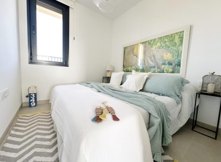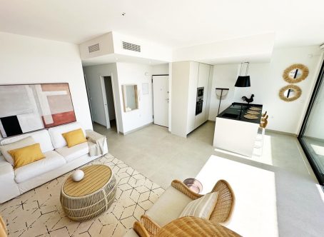 <strong>SPECIAL OFFERS APPLY - contact us for more information. </strong> This is an opportunity to buy a KEY READY brand new penthouse apartment located in Mar de Cristal very close to the beach, a short drive from La Manga Golf and close to the town of Los Belones that has great facilities and restaurants. These penthouse apartments offer amazing views to the sea. On entering the property you will find a large open plan living dining kitchen with an island and white goods included. There are large patio doors that lead onto the terrace that overlooks the communal gardens and inviting communal pool and to the sea. There is a useful utility room, two double bedrooms with fitted wardrobes, a family bathroom and the master bedroom has an ensuite bathroom and a walk in wardrobe. From the lounge stairs lead to the large roof solarium. These properties come with underground parking and a storeroom ideal for keeping your bikes and beach stuff. There is availability on all floors and the higher floors have sea views. Contact us to arrange to see the show apartments of this fabulous development.