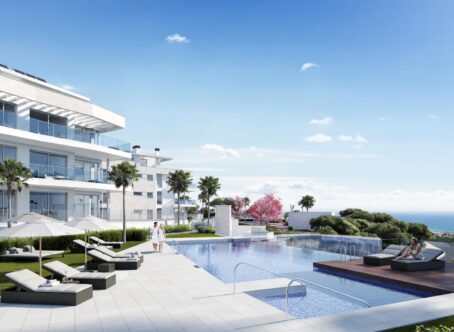 New proyect in Mijas Costa, apartments 2 or 3 bedrooms. Fantastic sea Views. Spa and Gym in the complex. 3 community pools and nice gardens. Putting green and paddle tenis court and social room Close to the Beach and Golf course.