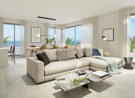 New proyect in Mijas Costa, apartments 2 or 3 bedrooms. Fantastic sea Views. Spa and Gym in the complex. 3 community pools and nice gardens. Putting green and paddle tenis court and social room Close to the Beach and Golf course.