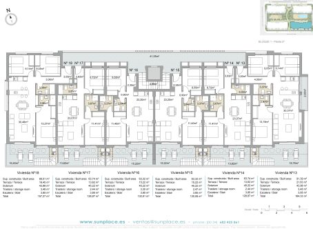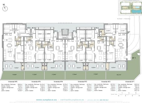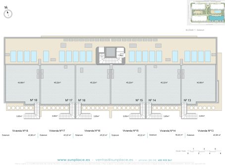 <strong>SPECIAL OFFERS APPLY - contact us for more information.</strong> We are excited to offer these fabulous apartments in an ideal location on the high street in Pilar de la Horadada close to amenities. There are two pools (one for kids) set in  pretty gardens which also have a play area, bike storage, jacuzzi, gym and Sauna. Each property has an underground parking space and storeroom. There is an elevator from the parking area. As you enter the front door down a hallway you will find the lounge/diner with open plan kitchen, there are patio doors leading out to the terrace. There are two double bedrooms with fitted wardrobes and two shower rooms (one of which is en suite). The Master bedroom also has access via patio doors to the terrace. From the Terrace you access the spacious solarium up the stairs.  It is just a 25 min walk to the beaches of Torre de la Horadada and a 35 min drive to Corvera Airport. Contact us to arrange to see these super properties before the sell out.