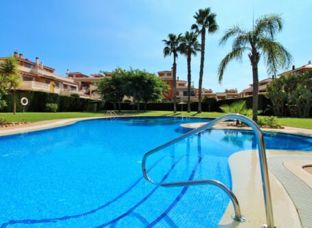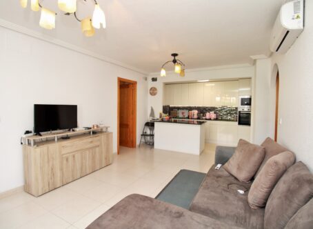 Modern 2-Bedroom Ground Floor Apartment – Zenia Mar 8, Playa Flamenca This well-presented ground floor apartment is situated in the sought-after Zenia Mar 8 urbanisation in Playa Flamenca. The property features two bedrooms and two bathrooms, a bright living and dining area leading to a private terrace overlooking the spacious front garden, and a fully renovated open-plan kitchen with quality appliances and a separate utility area. Offered in excellent condition throughout, the apartment is sold fully furnished, including white goods and air conditioning. Zenia Mar 8 residents benefit from beautifully maintained communal gardens and an attractive swimming pool surrounded by greenery. The location is ideal-close to shops, restaurants, local amenities, and within walking distance of the beach. Playa Flamenca provides a relaxed Mediterranean lifestyle with a warm climate, excellent facilities, and easy access to golf courses and the wider Orihuela Costa coastline.