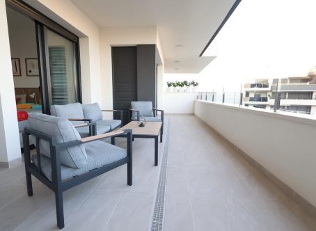 Located in the sought-after Residencial Sunrise Deluxe in Playa Flamenca, this stylish second-floor apartment offers a well-balanced combination of comfort, modern design, and excellent on-site facilities. With a total built area of 81 m², the property enjoys pleasant open views towards the sea and the communal pool, creating a bright and relaxing living environment. The apartment comprises two well-proportioned bedrooms and two bathrooms, including a master bedroom with en-suite. The living space is designed in an open-plan layout, seamlessly connecting the fully equipped kitchen with the dining and lounge area. Large sliding doors lead out to a spacious terrace, providing an ideal setting for outdoor dining or simply enjoying the surrounding views and Mediterranean climate. This property is sold fully furnished, allowing for immediate use without the need for additional investment. It also includes a private garage space and a separate storage room, adding practicality and convenience for both permanent living and holiday use. Residents of Amanecer de Luxe benefit from well-maintained communal areas, including a swimming pool, landscaped gardens, a gym, and a dedicated barbecue area, offering a lifestyle that combines relaxation and leisure within a secure residential setting. Situated in a prime area of Playa Flamenca, the apartment is within easy reach of a wide range of amenities, including restaurants, shops, and entertainment options. The nearby coastline and beaches are just a short distance away, while La Zenia Boulevard, one of the largest shopping centres in the region, is also easily accessible. This property presents an excellent opportunity as a permanent residence, holiday home, or investment, offering modern living in one of the most desirable locations on the Costa Blanca.