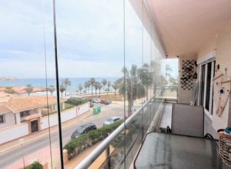 Stunning sea views from a large terrace. 2nd-floor apartment for €349,900. Discover this spectacular seafront apartment, a unique opportunity for those who value a privileged location and unparalleled views. Located on the second floor, the home offers stunning sea views from both the interior and the large terrace, making it the perfect place to relax, have breakfast, or watch the sunrise over the Mediterranean. 120 meters from the beach. The property has approximately 135 m² distributed across 3 spacious bedrooms, 2 full bathrooms, a bright living-dining room, and a fully equipped separate kitchen. The east-facing orientation ensures excellent light throughout the morning, bringing warmth and well-being to the spaces. The apartment is located in a recently renovated residential complex that includes a communal pool, green areas, new elevators, and access points adapted to current regulations. It is also equipped with air conditioning to ensure maximum comfort throughout the year. Its location in Playa Flamenca is another of its great attractions. It is just a short walk from supermarkets, restaurants, cafes, and all kinds of services, and very close to the Zenia Boulevard shopping center, one of the largest in the province with a wide range of shopping, leisure, and gastronomic offerings. The area also offers numerous leisure and tourism activities, Blue Flag beaches, internationally renowned golf courses such as Villamartín, Las Ramblas, and Campoamor, water sports, hiking trails, natural parks, and local markets, such as the Saturday market. Playa Flamenca is one of the most sought-after areas of Orihuela Costa, perfect for permanent residence or investment. Don't miss the opportunity to live with exceptional sea views and all the amenities that this magnificent home offers. Property tax €340, Price €349,900.