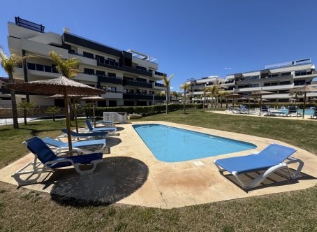 Located in the prestigious Sunrise Deluxe Complex, this exceptional three-bedroom, two-bathroom apartment offers spacious, high-end coastal living in the heart of Playa Flamenca. The standout feature is the expansive private terrace with panoramic sea views-perfect for outdoor dining, entertaining, or simply unwinding while enjoying the Mediterranean lifestyle. Inside, the property boasts a bright, modern open-plan living area designed for both comfort and style. The master bedroom includes a private en-suite, while two additional double bedrooms share a contemporary family bathroom, making the home ideal for families, guests, or remote working. Set within a secure, beautifully maintained gated community, residents enjoy lush landscaped gardens, a large communal swimming pool, and exclusive wellness facilities including a gym and sauna-delivering a true resort-style experience. Perfectly positioned within walking distance of supermarkets, restaurants, bars, and essential amenities, this apartment offers both convenience and vibrant coastal living without the need for a car. Combining generous space, stunning sea views, and premium facilities, this property is an outstanding choice as a permanent residence, luxury holiday home, or high-yield rental investment on the Costa Blanca.