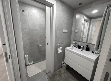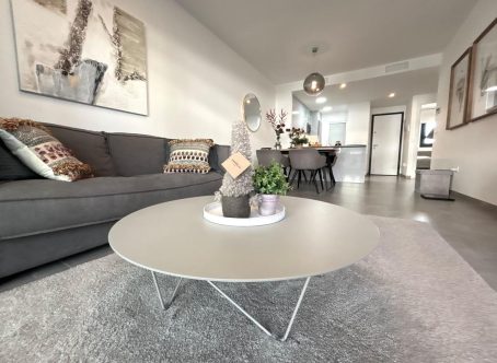 This brand-new, modern apartment is located in the highly sought-after Flamenca Village and enjoys a south-west facing balcony with lovely views over the beautifully maintained communal pool area. This exclusive urbanisation offers exceptional resort-style facilities, including four swimming pools (one heated), a fully equipped gym, landscaped promenade areas, and a pool bar, creating an outstanding lifestyle environment. The apartment is fully equipped and ready to move into, sold furnished and including all appliances as well as air conditioning throughout. Upon entering the property, you are welcomed by a hallway leading into a bright and spacious open-plan living area comprising a lounge, dining space, and a sleek modern kitchen. Large sliding doors open onto the generous 19 m² balcony, ideal for outdoor dining, entertaining, or simply relaxing in the sun. A hallway from the living area leads to two bedrooms, a family bathroom, and a large storage room. The master bedroom features an en-suite bathroom and also benefits from sliding doors providing direct access to the balcony. This is a true turnkey property, perfectly suited as a permanent residence, holiday home, or high-quality investment in one of the Costa Blanca’s most popular and prestigious developments.