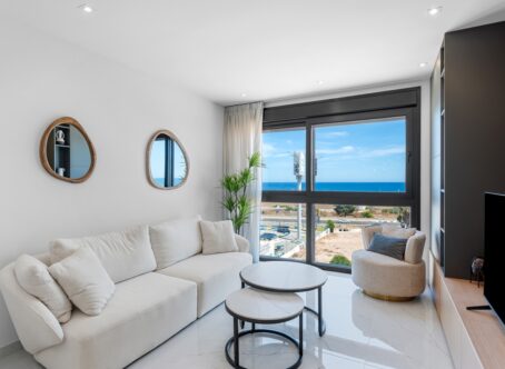 Elegant 3-Bedroom Duplex Apartment with Private Pool & Sea Views in Amanecer Deluxe, Orihuela Costa Located in the prestigious Amanecer Deluxe residential complex, this spacious two-storey apartment perfectly blends comfort, style, and stunning sea views. Just steps from the Mediterranean coast and close to all essential amenities, it’s an ideal choice for a permanent home or holiday investment. Key Features: Three bedrooms, including a master with en-suite bathroom Two bathrooms with modern finishes and underfloor heating Independent kitchen Spacious living-dining area Continuous balcony accessible from all rooms, offering panoramic sea views and outdoor seating space The upper floor boasts a private solarium complete with a swimming pool - your perfect sanctuary for relaxation and entertaining in total privacy. Additional highlights include PVC windows with electric shutters and high-quality furnishings throughout. The property is sold fully furnished for a move-in ready experience. Residents enjoy well-kept communal green areas, a swimming pool, and a children’s playground within this quiet and secure complex. A large enclosed parking space is also included.