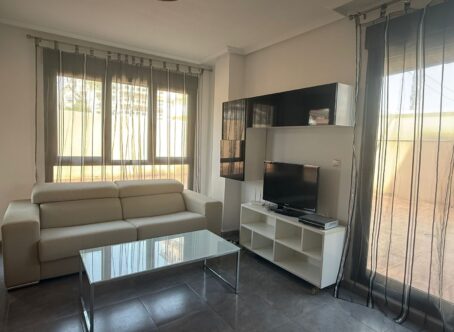 Ground-Floor 2-Bedroom Apartment with Large Terrace in Punta Prima For sale is a bright and cozy corner apartment on the ground floor of the DAMA residential complex, just a 2-minute walk from the sea in the highly sought-after Punta Prima area (Costa Blanca). The apartment features: Two spacious bedrooms with furniture and built-in wardrobes One bathroom Bright living room with large windows and direct access to the terrace Separate fully equipped kitchen, including fridge and dishwasher Interior styled in neutral tones, perfect for permanent living or holidays The highlight is the spacious 40 m² corner terrace, ideal for relaxing, outdoor dining, or entertaining guests. It comes fully equipped with outdoor furniture, offering privacy and comfort. Included in the price are an underground parking space and a storage room, perfect for bikes, beach gear, or seasonal items. The complex also features a communal swimming pool for residents. The location is extremely convenient: 3-minute walk to the beach, walking distance to cafés, restaurants, pharmacies, supermarkets, and public transport. La Zenia Boulevard shopping center is just 5 minutes by car, Torrevieja center 10 minutes, and Torrevieja Hospital approximately 7 minutes away. This fully ready-to-move-in apartment offers a comfortable coastal lifestyle with a large outdoor space. Just bring your suitcase and start enjoying life by the sea!