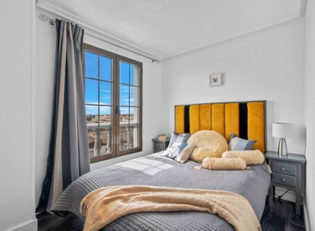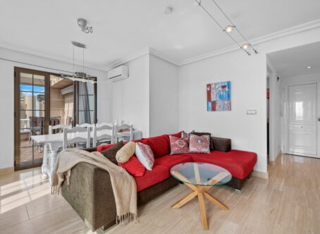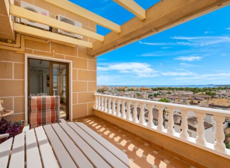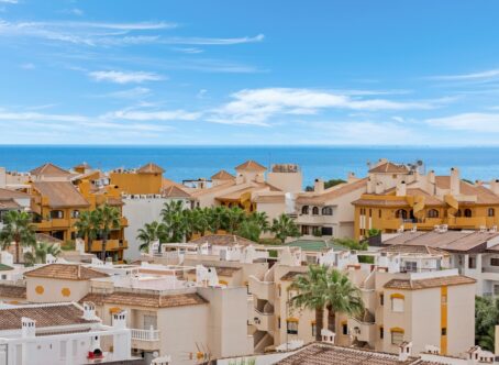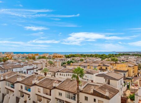 South-Facing Duplex Penthouse with Sea Views – Punta Prima, Alicante This stunning south-facing duplex penthouse is ideally located just 700 meters from the beach in Punta Prima, Alicante. Set within a well-maintained community with lift access and a large swimming pool, it offers the perfect Mediterranean lifestyle. The apartment spans two levels: Lower Level: Two comfortable bedrooms and a full bathroom for privacy and restful nights. Upper Level: Bright open-plan living and dining area with a modern kitchen, an additional bathroom, and access to a sunny terrace with breathtaking sea views, perfect for outdoor dining and relaxation. The property is fully furnished and includes a private parking space. Location Highlights: Walking distance to supermarkets, shops, cafés, and restaurants 700 meters to the beach Excellent transport links to Alicante city and airport Ideal as a holiday retreat, rental investment, or year-round home, combining comfort, location, and lifestyle.