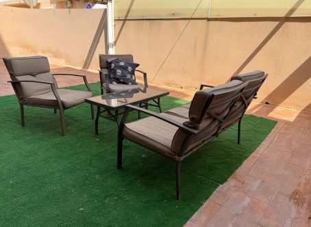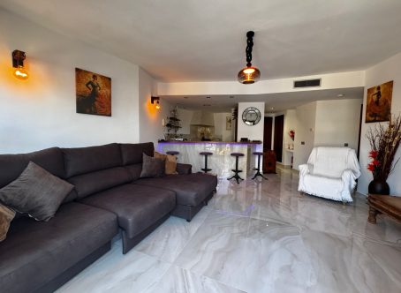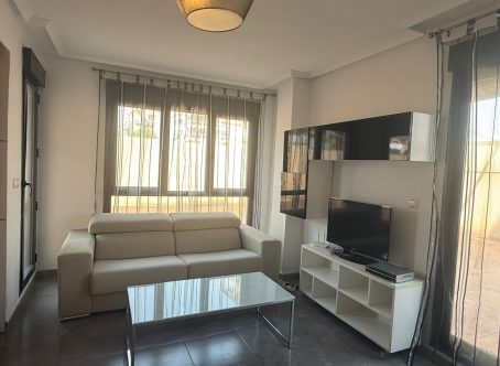 Spacious 2-Bedroom Penthouse with Private Solarium, 500m from the Beach in Punta Prima For sale is a bright and cozy two-bedroom penthouse located on the top (third) floor of the prestigious Panorama Park residential complex in Punta Prima, just 500 meters from the sea. The apartment has undergone a complete renovation, including full electrical rewiring, hidden connections for electricity, TV, radio, and internet. The spacious living room with a fireplace is integrated with an American-style open kitchen featuring a breakfast bar, modern appliances, and stylish lighting. Floors and bathroom tiles have also been fully updated. To the left of the entrance, you’ll find two comfortable bedrooms and a bathroom. From the living room, step onto a balcony that leads via an external staircase to your private rooftop solarium, complete with a storage room and side sea views-perfect for sunbathing and outdoor relaxation. Please note: the apartment is sold without a parking space. Panorama Park is a gated and secure urbanization with 24/7 security, video surveillance, and tropical gardens. The complex offers: Two adult swimming pools and a children’s pool Pitch-and-putt mini golf area Decorative ponds and sports zones Satellite TV and internet services Punta Prima is one of the greenest and most peaceful areas of southern Costa Blanca, just 5 km from Torrevieja center. Within walking distance are Cala Piteras and Playa de Punta Prima (Blue Flag beaches), supermarkets, cafés, restaurants, and major shopping centers like La Zenia Boulevard and Punta Marina. With up to 320 sunny days per year, this area offers an ideal Mediterranean lifestyle, perfect for year-round living or holidays. Contact us today to arrange a viewing, get more information, and receive support at every step of your property purchase in Spain.