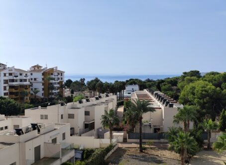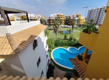 Stunning Penthouse with Sea Views in Panorama Park, Punta Prima Discover coastal elegance in this beautiful 2-bedroom penthouse offering breathtaking panoramic sea views and a resort-style lifestyle. Located in the prestigious Panorama Park complex in Punta Prima, this property combines comfort, style, and convenience - ideal for permanent living or as a luxurious holiday retreat. Key Features 2 Bedrooms – Bright, spacious, and designed for comfort 1 Modern Bathroom – Fully fitted with high-quality finishes Private Terrace (8m²) – South-facing with spectacular sea views, perfect for outdoor dining Private Solarium (27m²) – Direct access from the terrace, offering the ultimate space for sunbathing or evening relaxation Open-Plan Living Area – Bright lounge and fully equipped kitchen with washing machine, oven, dishwasher, ceramic hob, and extractor fan Central Air Conditioning – Ensuring comfort year-round Underground Parking – Secure private space included Community Storage Room – Convenient additional storage Resort-Style Complex – Two communal swimming pools, lush landscaped gardens, and peaceful surroundings About Panorama Park & Punta Prima Panorama Park is a secure, gated complex renowned for its beautifully maintained gardens and tranquil ambiance. Residents enjoy a sense of exclusivity while remaining just steps away from local amenities. Located in Punta Prima (Orihuela Costa), this penthouse is within walking distance to sandy beaches, shops, restaurants, bars, and supermarkets. The area offers excellent transport connections and is close to several top golf courses. Distances Beach – 10-minute walk Supermarkets & dining – 5-minute walk Golf courses – short drive Alicante Airport – approx. 45 minutes by car This exceptional penthouse perfectly combines sea views, modern comfort, and Mediterranean lifestyle in one of the most desirable locations on the Costa Blanca. Don’t miss your chance to make it yours - contact us today to arrange a viewing!