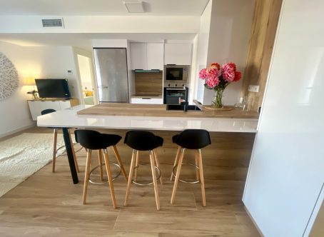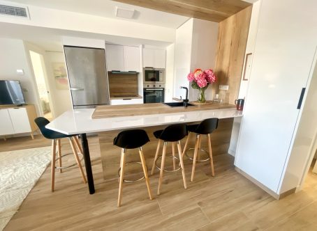This upgraded three-bedroom apartment is located within Edificio Nautilus II, one of Punta Prima’s most recognised coastal developments, just a short walk from Cala Piteras beach and the popular Nautilus Restaurant. The setting offers an ideal balance of seaside living and everyday convenience in a well-established area of the Orihuela Costa. The apartment is fully furnished and presented in move-in-ready condition. Inside, the layout is bright and well balanced, with a comfortable living and dining area that flows seamlessly into a recently renovated modern kitchen. The kitchen features a stylish island design, quality integrated appliances, and well-organised storage, making it both practical and sociable. There are three well-proportioned bedrooms. The main bedroom benefits from an en-suite bathroom, while the remaining two bedrooms are served by a second full bathroom. Centralised air conditioning throughout the property ensures year-round comfort. Additional features include an underground enclosed garage, a private storage room located in the solarium area, and attractive sea views from the terrace, providing a pleasant coastal outlook and an ideal space to relax. Residents of Edificio Nautilus II enjoy access to a communal swimming pool set within neatly maintained landscaped gardens. The community is secure, well cared for, and managed to a consistently high standard. Cala Piteras beach is just moments away and is well known for its calm waters and scenic coastal paths that lead towards Torrevieja’s promenade. Supermarkets, cafés, public transport, and other daily amenities are all close at hand, allowing for easy living without reliance on a car.The wider Orihuela Costa area offers excellent connectivity, with La Zenia Boulevard, several prestigious golf courses such as Villamartín and Las Ramblas, and a variety of beaches all within a short drive. Alicante Airport is approximately 45 minutes away, while Murcia Airport can be reached in around 35 minutes, providing convenient year-round international access.