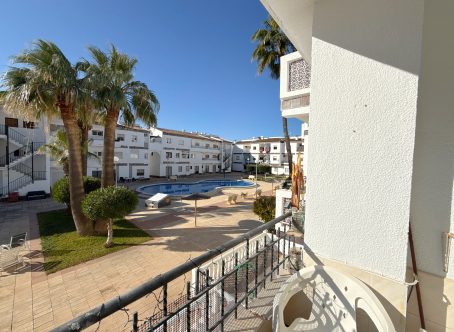 This lovely first-floor apartment is ideally located on the beachside of Punta Prima, just a 400-metre walk from the beach and promenade, as well as the popular Nautilus restaurant. The apartment is south-facing and overlooks the communal swimming pool, enjoying plenty of natural light throughout the day. It is sold fully furnished and features a sunny private balcony, along with allocated parking. All amenities are close at hand, with the bars and restaurants along the Punta Prima strip just 300 metres away, as well as a convenient bus link into Torrevieja. This property represents an excellent opportunity to own an affordable apartment in a fantastic beachside location, ideal for holidays, rental investment, or year-round living.