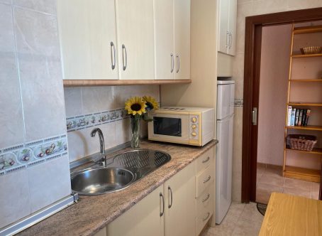 Cozy 1-Bedroom Apartment Near the Beach – Punta Prima This cozy one-bedroom, one-bathroom apartment is located on the sixth floor of a well-maintained building in Torrevieja, offering comfortable living just a short walk from the beach. The building is equipped with an elevator, providing easy and convenient access to all floors. The apartment is accessed via a shared corridor that offers a pleasant side view of the sea, adding to the coastal atmosphere. Inside, the living room opens onto a private balcony overlooking the communal swimming pool and landscaped courtyard-an ideal space to enjoy morning coffee, relax in the evening, or unwind outdoors. The property is sold fully furnished and ready to move into. Its functional and practical layout makes it an excellent choice for a single person or a couple, whether for permanent living or as a holiday home on the Costa Blanca. The surrounding area benefits from a well-developed infrastructure, with supermarkets, shops, pharmacies, banks, cafés, and restaurants all within walking distance. Nearby bus stops provide convenient transport links to the center of Torrevieja and other coastal areas. Torrevieja Hospital and the popular La Zenia Boulevard shopping and leisure center are just a short drive away, offering a wide range of retail, dining, and entertainment options. The beach is only a few minutes’ walk from the property, allowing easy access to the sea, sunshine, and scenic coastal walks. Set in a quiet and safe neighborhood with a mix of local and international residents, this apartment represents an excellent opportunity for those seeking a practical and cozy home close to the sea, with all amenities close at hand.