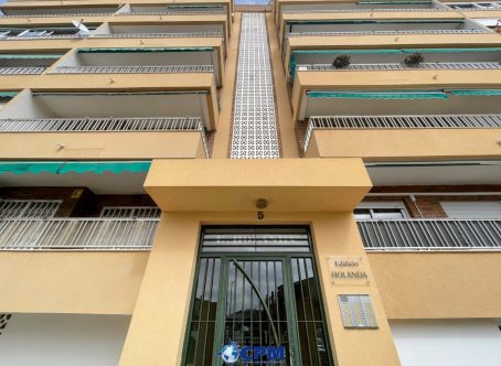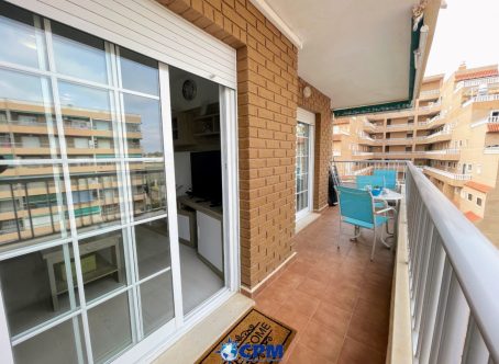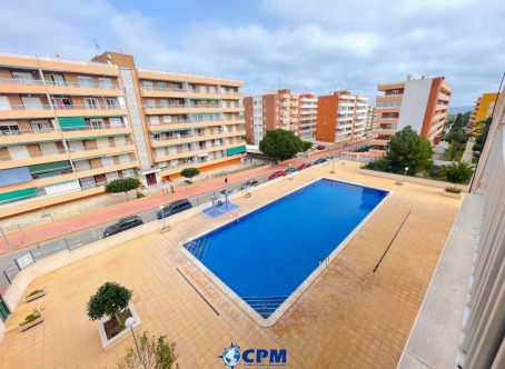 Located on the fourth floor with lift access, this attractive apartment is set within the sought-after Edificio Holanda on Avenida de las Olas in Punta Prima, one of the most desirable coastal areas. Positioned on the beach side of Punta Prima, the property is just a five-minute walk from the sea and benefits from access to a large communal swimming pool within the complex. A wide selection of amenities, including shops, bars, restaurants, and everyday services, are all within easy walking distance. The apartment opens into an entrance hallway leading through to a bright living room. From here, there is access to a private balcony overlooking the communal swimming pool, offering a pleasant space to relax and enjoy the outlook. The property also comprises two well-proportioned bedrooms and a family bathroom, all arranged for practical and comfortable living.Thanks to its excellent location, lift access, proximity to the beach, and nearby amenities, this apartment is ideal as a holiday home, rental investment, or permanent residence.