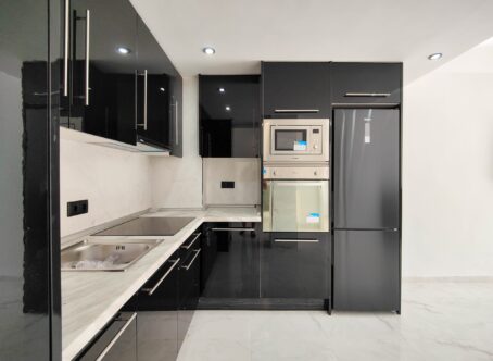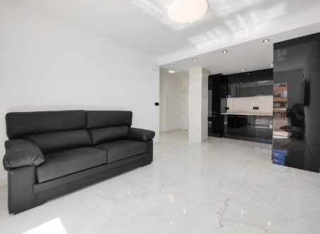Beautiful completely renovated south facing apartment with views over the swimming pool for sale in Rocío del Mar – Punta Prima – Torrevieja. Located in a building with elevator, covered and fenced parking for residents and a huge communal swimming pool with lifeguard. Very well kept building.This wonderful apartment has been completely renovated, including electrical installation and plumbing, ready to move into.The apartment has 2 large bedrooms with fitted wardrobes and access to the terrace, 2 bathrooms (both with shower), a bright living / dining room with a beautiful brand new integrated kitchen.The bedrooms and the terrace enjoy an excellent SOUTH orientation, which gives them a lot of natural light. From the terrace we have unobstructed views over the communal pool, ideal for keeping an eye on the children.OPTIONAL closed garage in the underground garage available if required.Privileged location, a few steps from the bars, restaurants, supermarkets and the beaches of Punta Prima.Do not miss the opportunity to buy this beautiful completely renovated south facing apartment with the best orientation and on the best location in Punta Prima!
