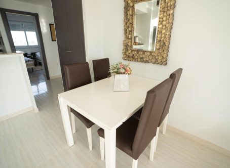 Luxury 2-Bedroom Penthouse for Sale in Residencial Silene, Punta Prima This modern and luxurious penthouse is located in the highly sought-after Residencial Silene urbanization at Ciñuelica, Punta Prima, just 1.5 km from the sandy beach. Built in 2014 and exceptionally well maintained, the apartment enjoys a sunny south east facing aspect. The property comprises two double bedrooms, a bathroom, and both bathrooms feature windows for ample natural light and ventilation. The open-plan lounge and dining area flows seamlessly into a fully equipped kitchen with storage and utility room. The penthouse boasts a south east facing sun terrace and a large solarium, offering direct views over the communal swimming pool and lush gardens. There is a private parking space within the communal parking facilities. Residencial Silene is a secure, gated complex with beautifully maintained gardens and a feature swimming pool. The location is excellent, with local bars, restaurants, shops, supermarkets, and the nearby commercial centre all within easy reach. The promenade and beach of Punta Prima are just 1.5 km away. This is a rare opportunity to acquire a luxury property in one of Punta Prima’s most desirable complexes. Contact Inmo Investments today to arrange a viewing.