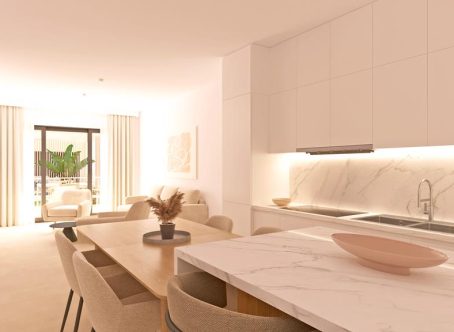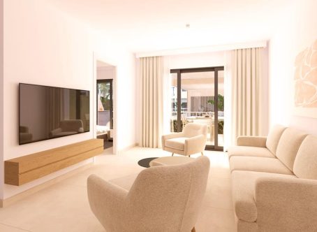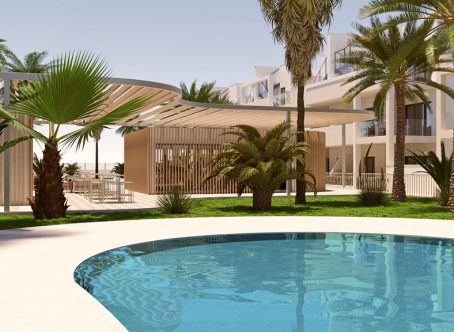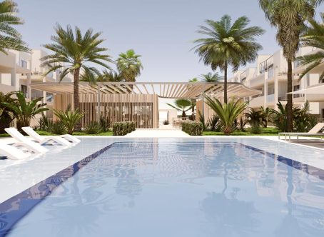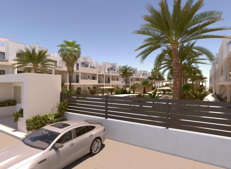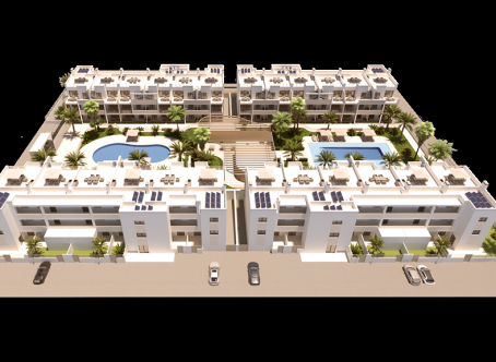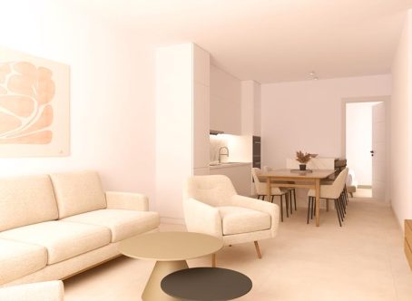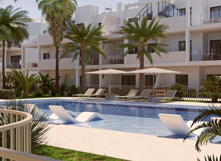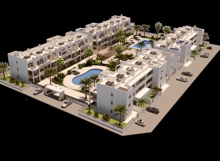 <strong>SPECIAL OFFERS APPLY – contact us for more information. </strong>We are excited to offer this new development being built in San Cayetano, there are two and three bedroom apartments available on the ground, first or top floor and they all come with a parking place and a storeroom. San Cayetano is a great town, with a couple of supermarkets, a fantastic restaurant Rincon de Joaquin, several bars, a community centre, tobacconist, bank and vets.  A bus runs to both Santiago de la Ribera and Lo Pagan.  Balsicas train station, is a 5 minutes drive with with routes to Madrid, Murcia and Cartagena.  Murcia City and airport is a 30 minute drive and the beaches of the Mar Menor a 15 minutes drive. This three bedroom two bathroom first floor  apartment comes with white goods, summer kitchen on the terrace and has preinstallation for vented Ac. The property has a good sized open plan lounge kitchen diner with patio doors to the terrace. The kitchen comes with an island and white goods. There are three double bedrooms with fitted wardrobes, a family bathroom and the master bedroom has its own ensuite bathroom and patio doors to the terrace. There is a communal pool and also a community gym. Top floors come with roof solariums and ground floors have garden areas too. Contact us for more information.