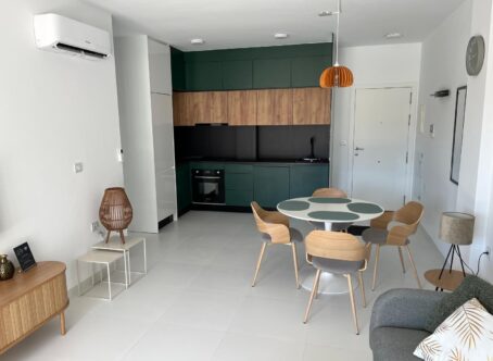 This modern 2 bedroom, 2 bathroom apartment is located in San Miguel de Salinas, in an excellent location close to all amenities and leisure areas. With a built area of 75 m², the house features a fully equipped open kitchen, a bright living room and two bedrooms, and access to a private veranda and a private garden overlooking the communal garden and swimming pool. Highlights: 2 built-in wardrobes Furnished Equipment included Air conditioning and pre-installation for air conditioning Secure door and intercom Located on the ground floor with easy access Ideal location: Only 15 minutes from the beach 40 minutes from the airport 10 minutes from the golf course 10 minutes from recreational areas and amenities Perfect for both permanent living and holidays. Ready to move in!